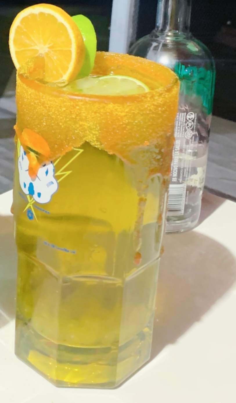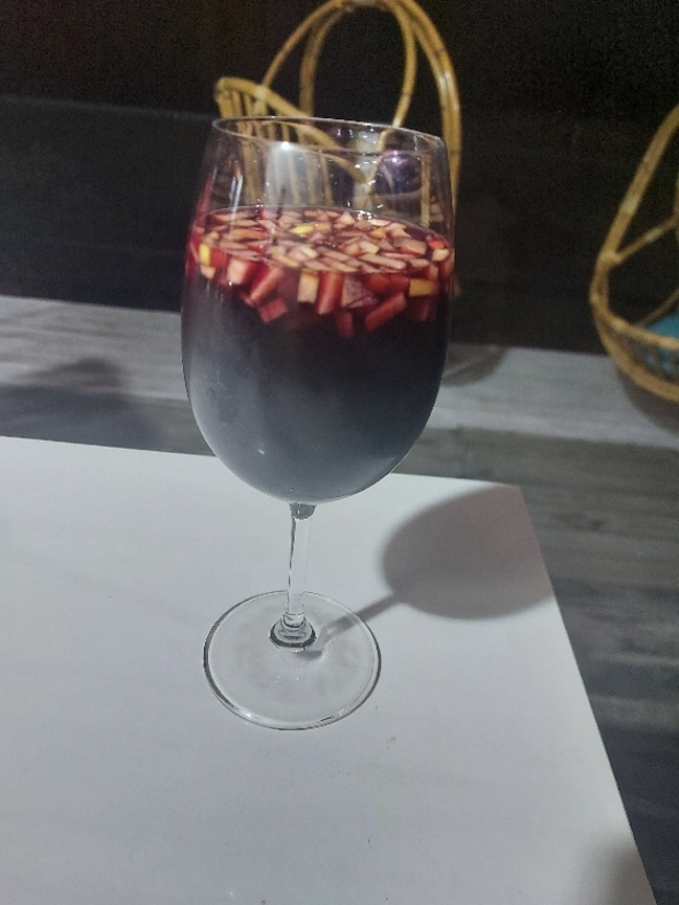 Vino con tequila y fruta en rodaja (naranja,limón,manzana )